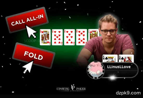 因为河牌是J♦,Linus在四同花牌面改进成顺子。