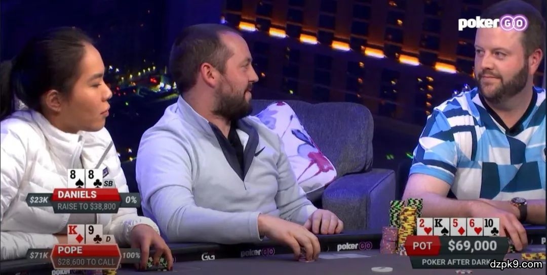 Daniels是个操控大师,他成功地操控了Pope,让其相信自己有一手大牌。这一步真的打得有勇有谋,也只有Daniels这种艺高人胆大的玩家才敢这么玩。