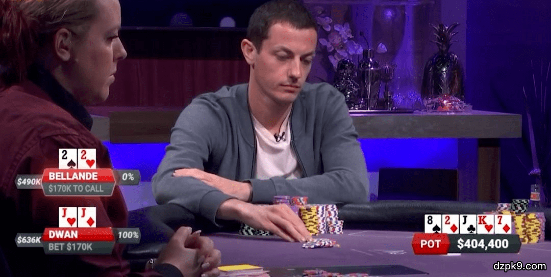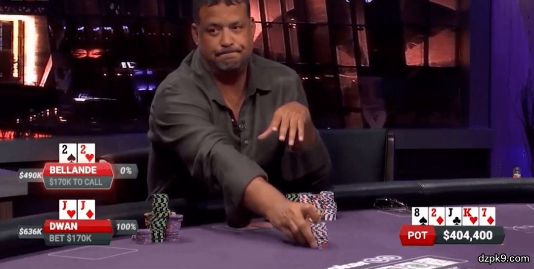 总结:这手牌其实发出翻牌就注定是一个大底池了,就算翻牌都过牌,到了转牌的高张K都会让自己感觉对手击中了K从而可以拿价值了。最后河牌的纠结也是证明了桌子上玩家的实力都很强,无奈在干燥牌面击中了set真的好难弃牌,如果您是22玩家会如何游戏呢?