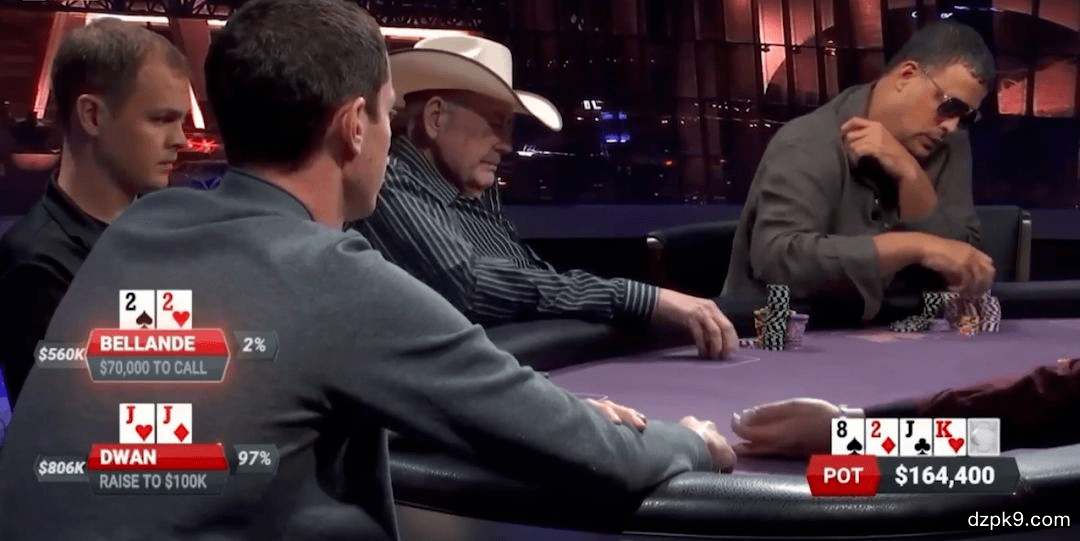 本次牌局发生在国外200-400美元的常规桌上,汇集了毒王、老道等在内的各路高手,筹码深度更是高达1000BB以上,是一场名副其实的超深筹码的对抗。