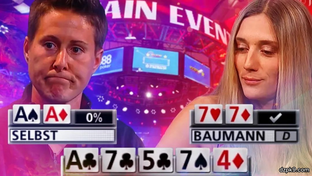 因此,Baumann的范围基本就只剩两手牌,要么是A7s,要么是77,这两手牌Baumann都会用来全下,为这个理由,女鲨的跟注无可厚非,清楚分析了整手牌后的Vanessa Selbst选择跟注,命运让她碰上了77而非A7s,她会难过,但应该不后悔,毕竟这种选择没有错,有一句话叫“尽人事听天命”,她尽了人事,只是命该如此罢了~