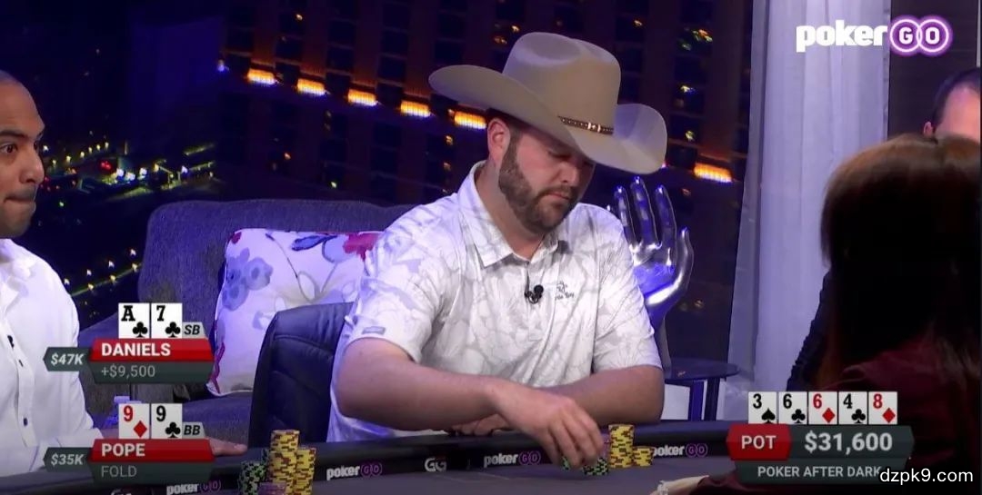 Pope问道。"你有一手好牌吗",然后进入大约50秒长考,最后把他的牌扔掉。