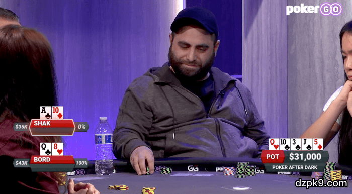 河牌是5♦。Shak往31000美元的底池下注7000美元,Bord考虑了一会儿,然后跟注。最终Bord凭借顶对拿下一个45000美元的大底池。
